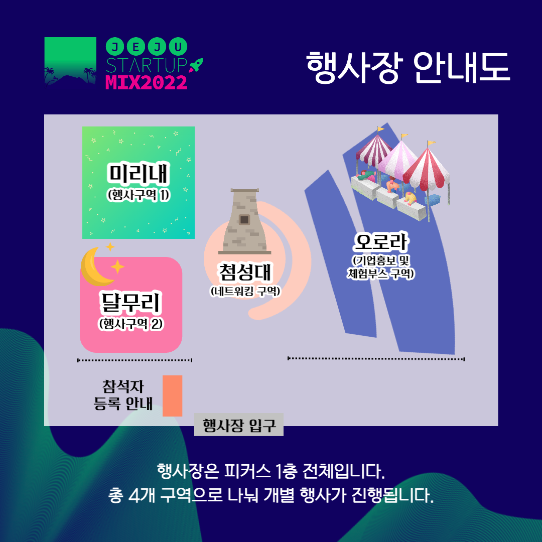 행사장은 피커스 1층 전채로 총 4개의 구역으로 나눠 개별 행사가 진행됩니다.